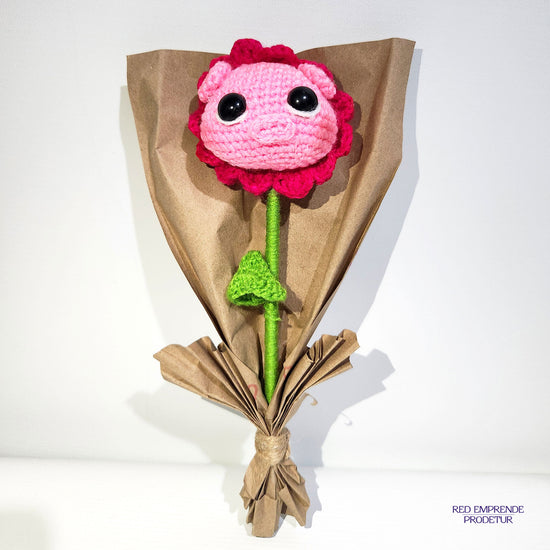 Adorno con forma de Cerdito Flor, hecho en crochet, 27 cm. de largo