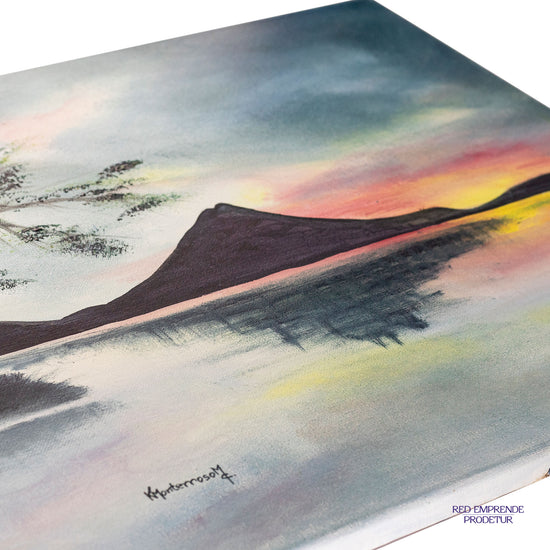Cuadro en óleo sobre lienzo, del lago Atitlán. Tamaño 40.6x50.8 cm.