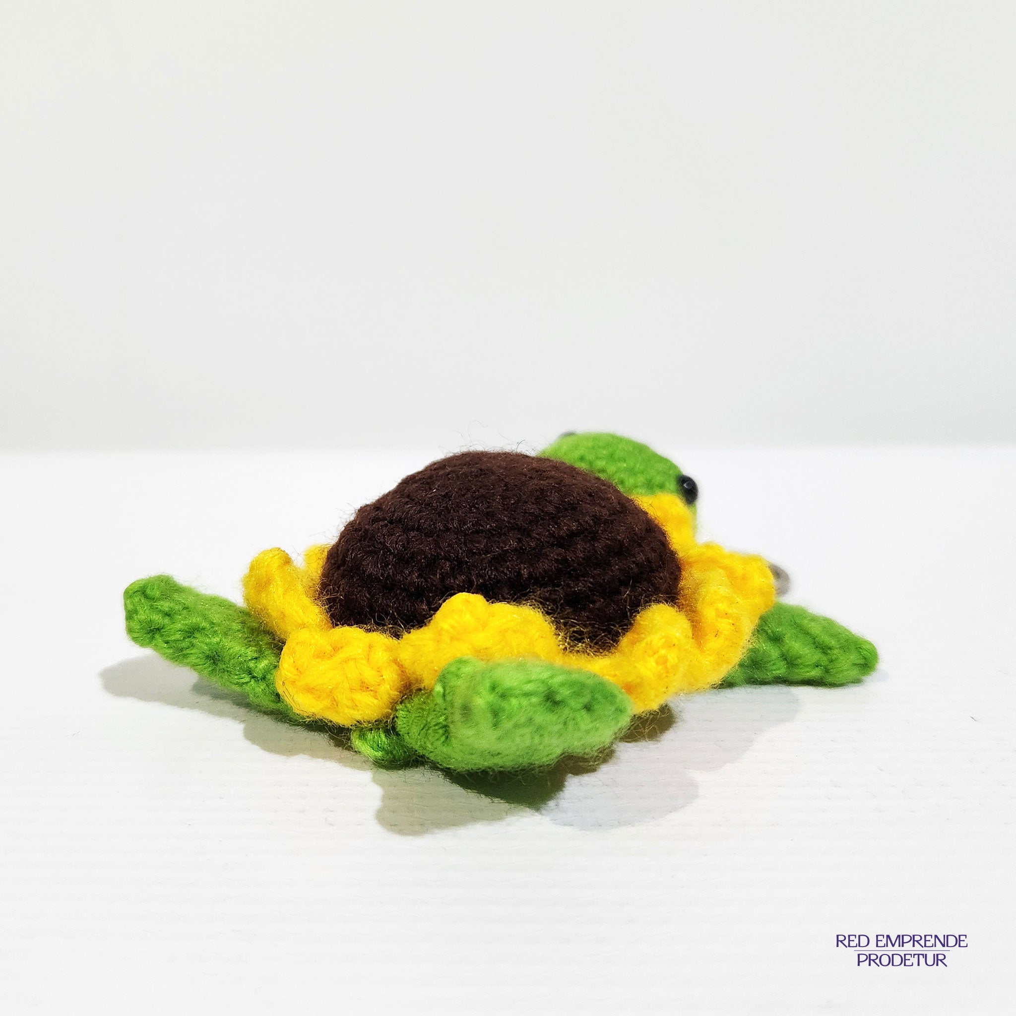 Llavero elaborados en crochet con forma de tortuga con flor, Tamaño 10 cm de ancho x 9 cm de ancho