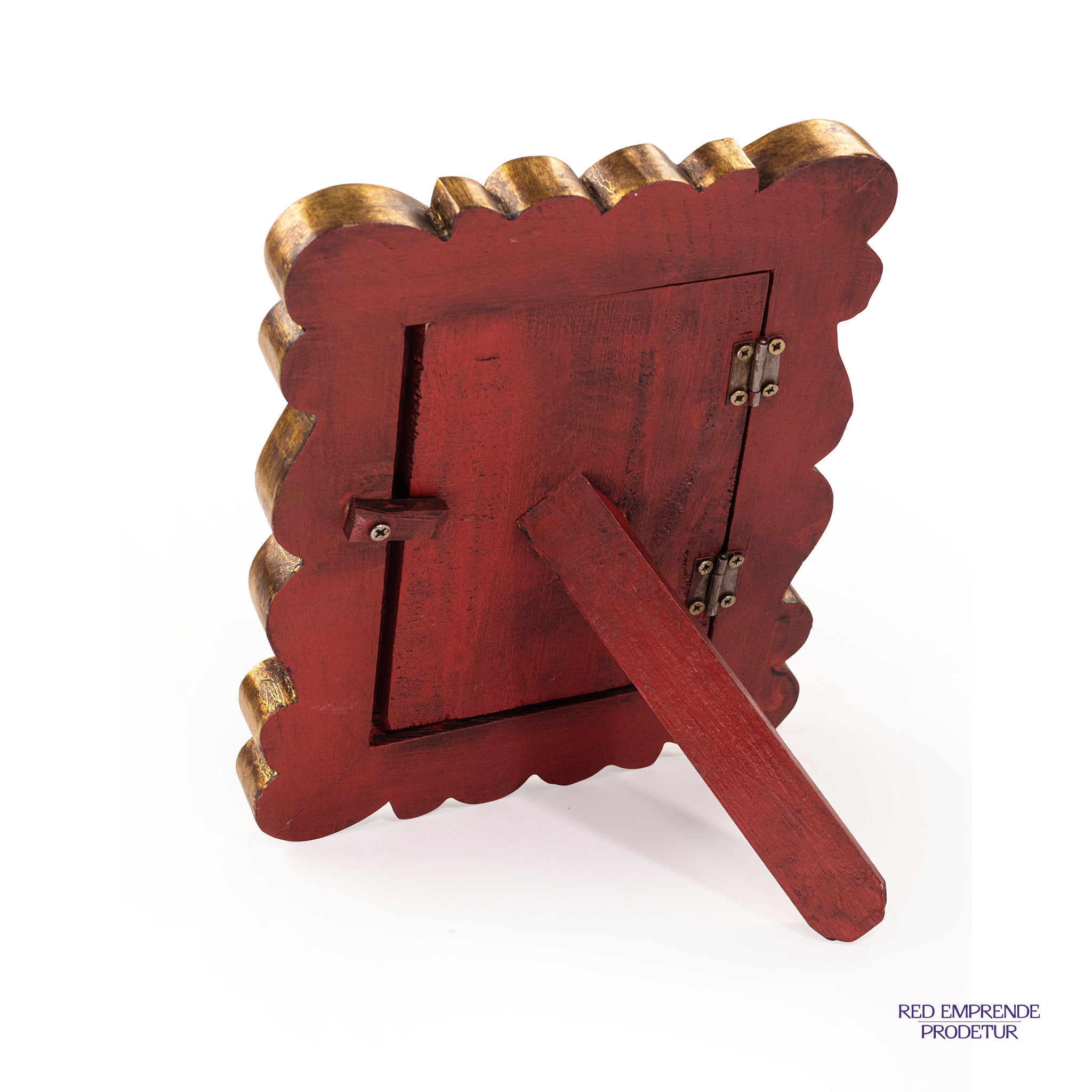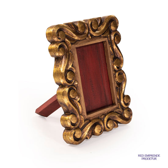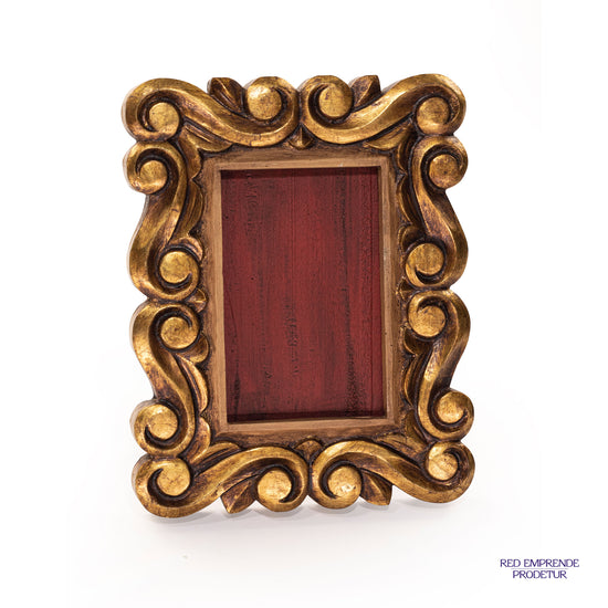 Marco dorado, elaborado en madera de cedro con lámina de oro italiano, tamaño: 20 x 25 cm.
