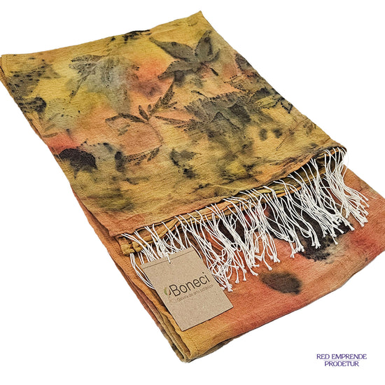 Tejido fibra manta de algodón, estampado / teñido con hojas recolectadas de la naturaleza. Talla L (174cm largo*61.5cm de ancho)