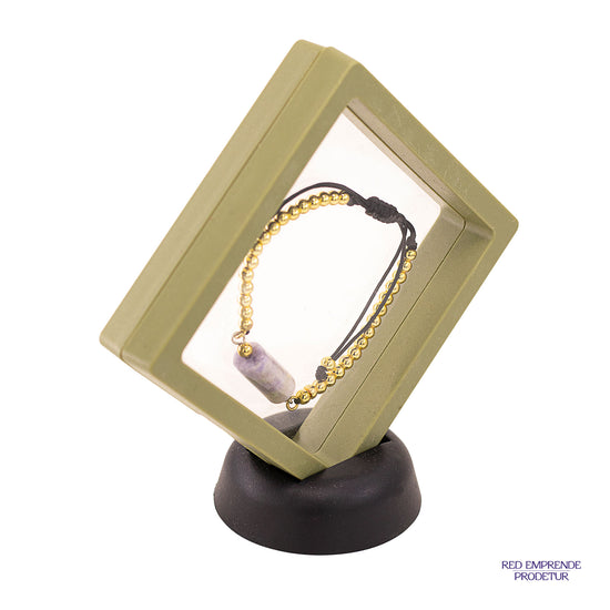 Pulsera de acero inoxidable con tubo de jade color lila.