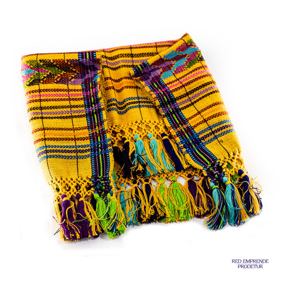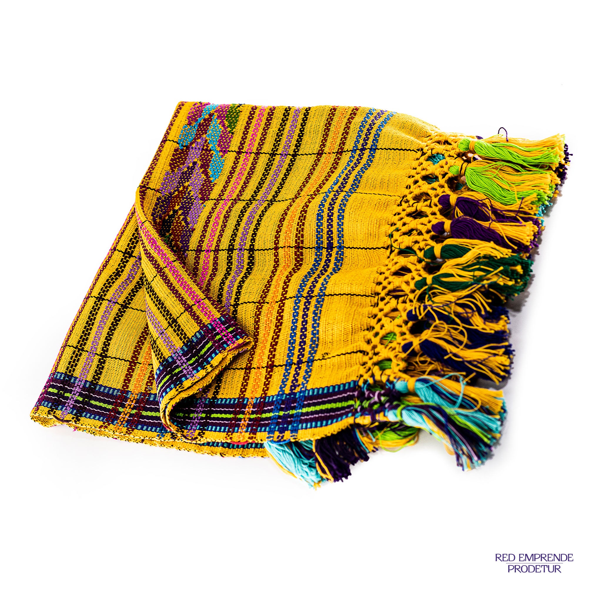 En hilo de algodón color naranja, medidas 35.5cm de ancho y 48.5cm de largo.