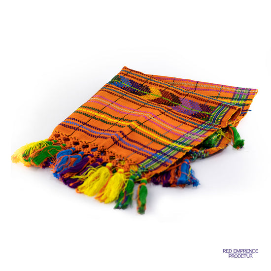 En hilo de algodón color amarillo camelia, medidas 49.5cm de ancho y 41.5cm de largo y 41cm de ancho.